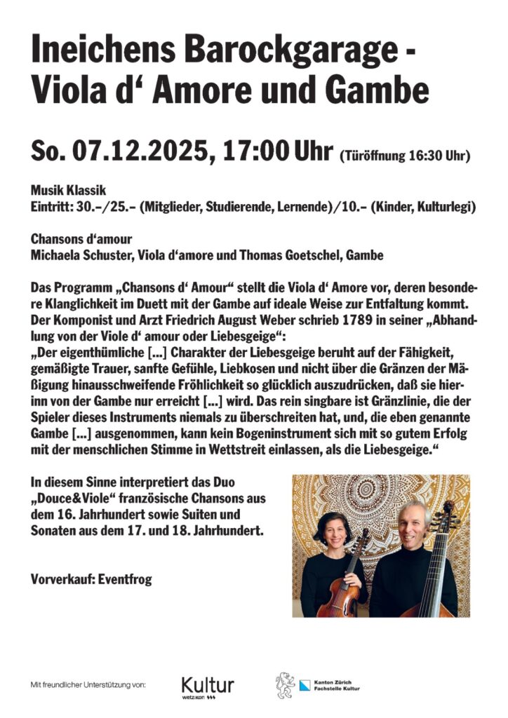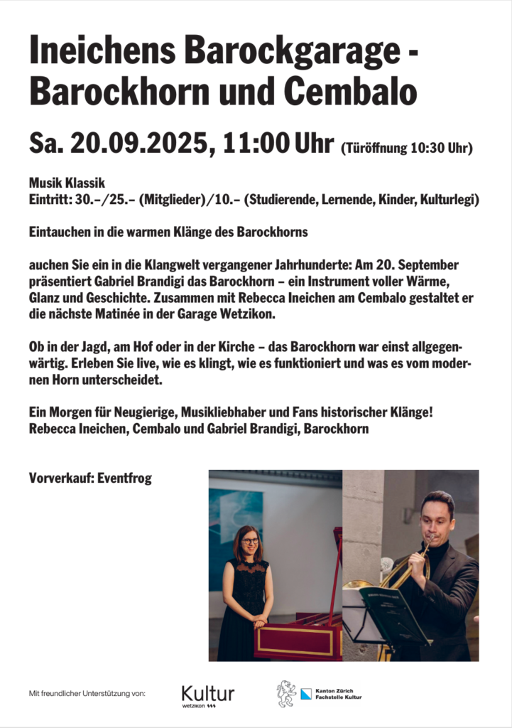 Seit April 2022 ertönt barocke Musik in der Garage Wetzikon. Kurz nach der Eröffnung durften wir mit der Konzertreihe „Ineichen’s Barockgarage starten. Sehen Sie hier, was wir alles schon erlebt haben: