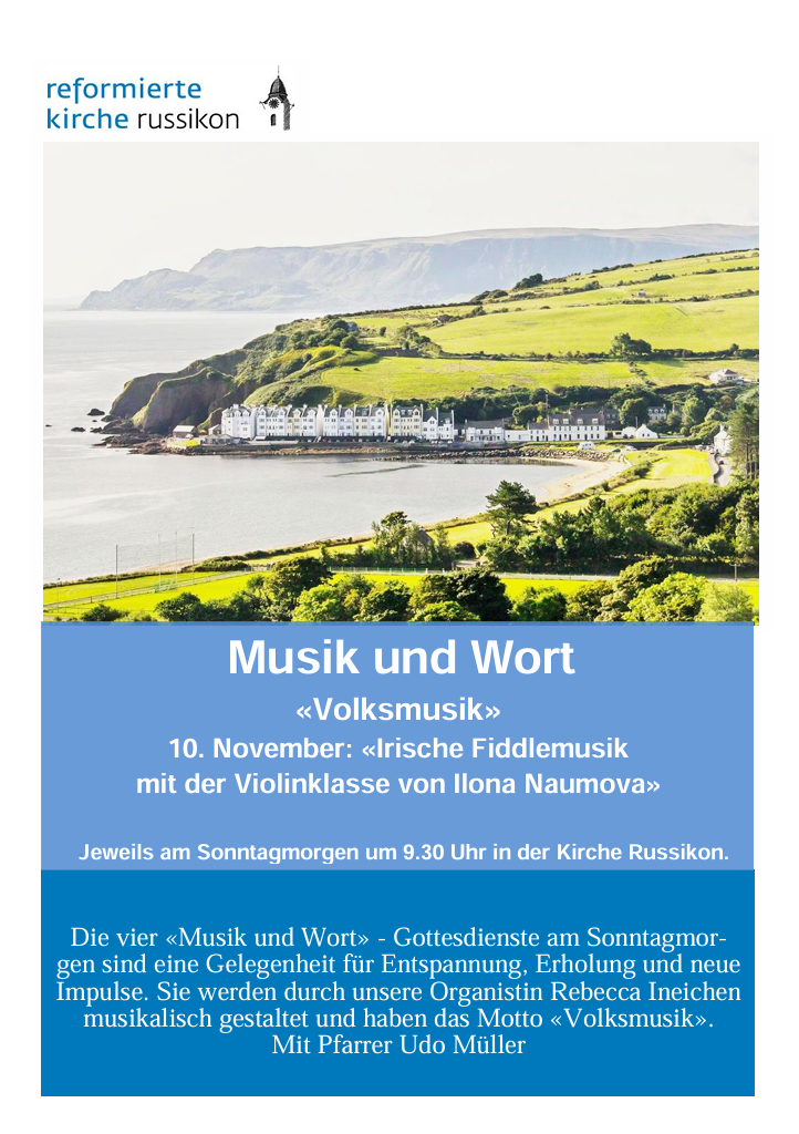 Die Vier Musik+Wort-Gottesdienste am Sonntagmorgen sind eine Gelegenheit für Entspannung, Erholung und neue Impulse. Sie werden durch unsere Organistin Rebecca Ineichen musikalisch gestaltet und haben in diesem Jahr das Motto „Volksmusik“. Pfarrer Udo Müller wählt dazu passende Texte aus.